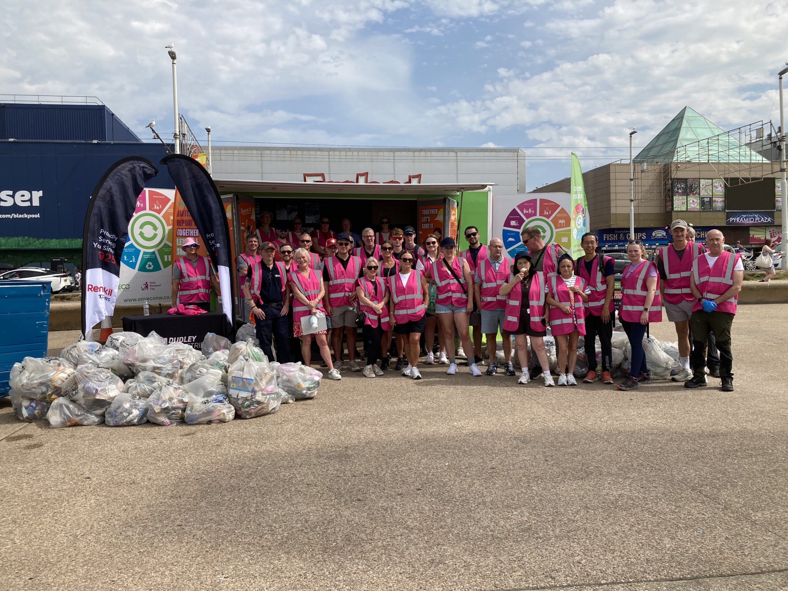 On Tuesday, 12th August 2025, we had the pleasure of hosting a litter pick on Blackpool’s beach and seafront for 55 Rentokil employees. They worked extremely hard, and altogether they collected 74 bags of litter.